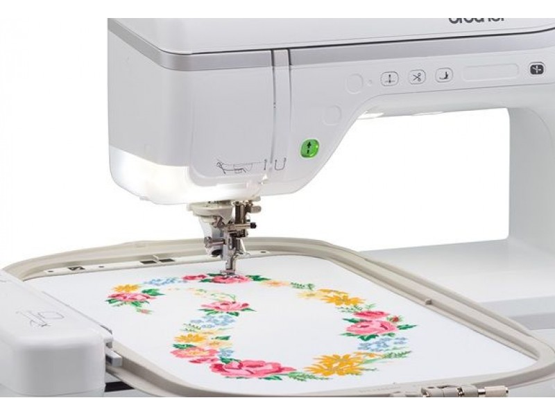 Одно из преимуществ Janome 1522RD — это увеличенное рабочее поле: 105.4×111.8 мм, которое позволит работать с масштабными проектами. Благодаря регулятору давления лапки машинка легко шьёт все виды тканей от шифона до джинсы.